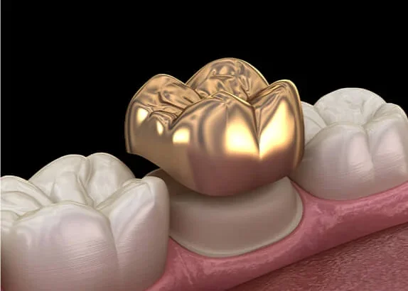 Metal dental crowns are much more noticeable and will not blend in with your natural teeth. They are very durable, strong and long-lasting!